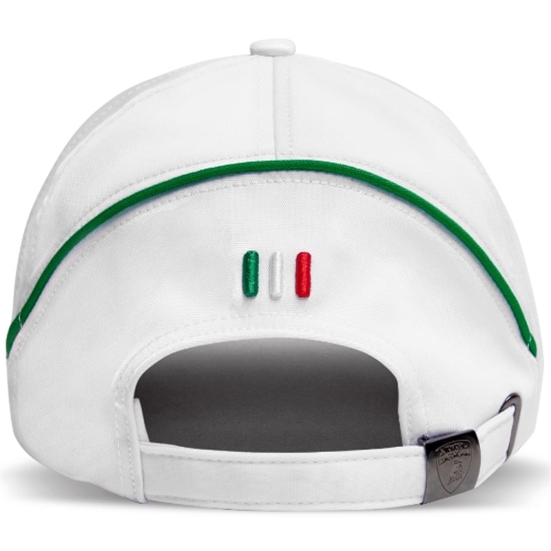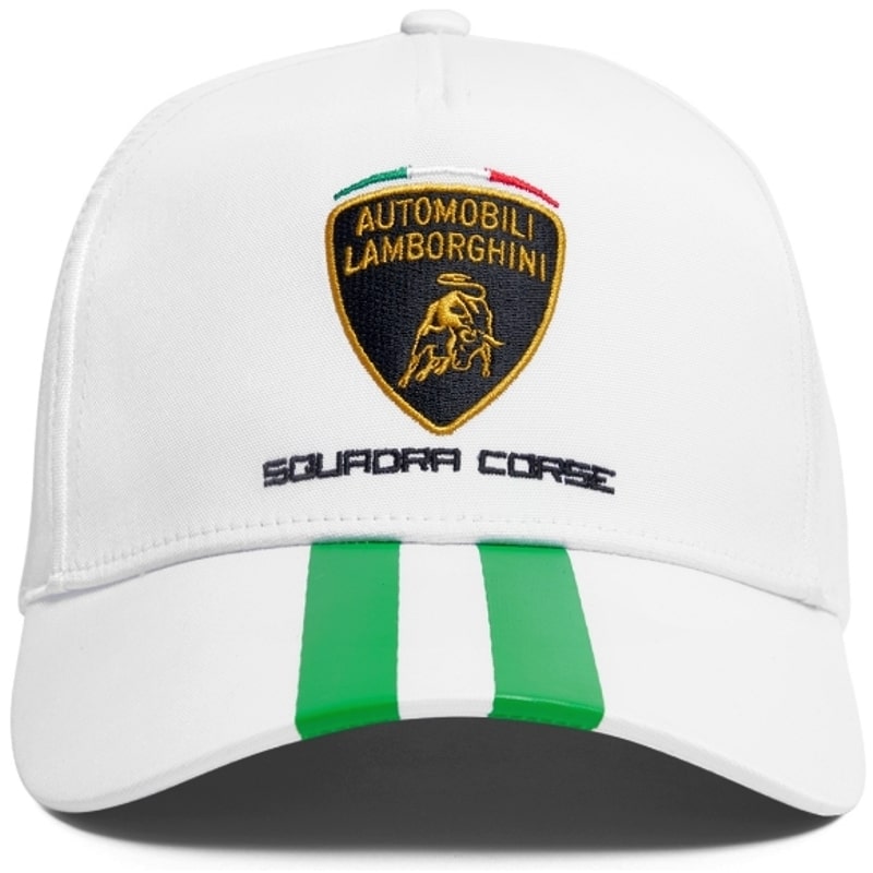 Automobili Lamborghini Squadra Corse Cap, flawlessly finished with the Automobili Lamborghini Squadra Corse logo embroidered on the front panel and the Italian flag at the back.