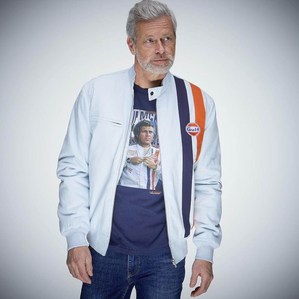 The Gulf Delaney jacket by GrandPrix Originals, is inspired by Steve McQueen’s racing suit from the film “Le Mans.”