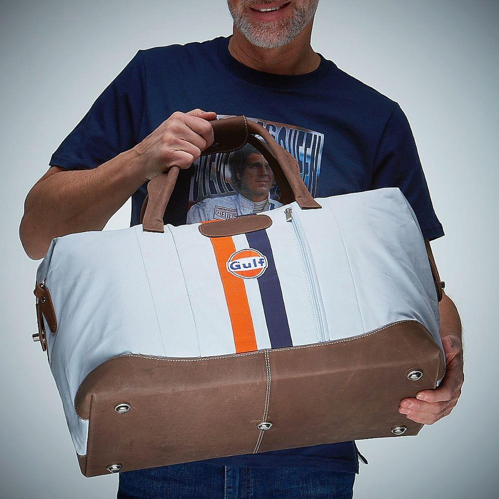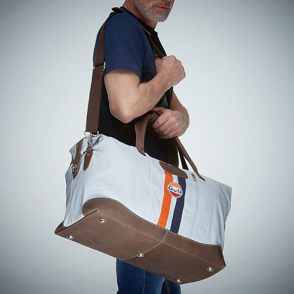 Grandprix Originals presents the classic travel bag with the Gulf logo and racing stripes.