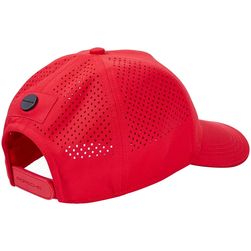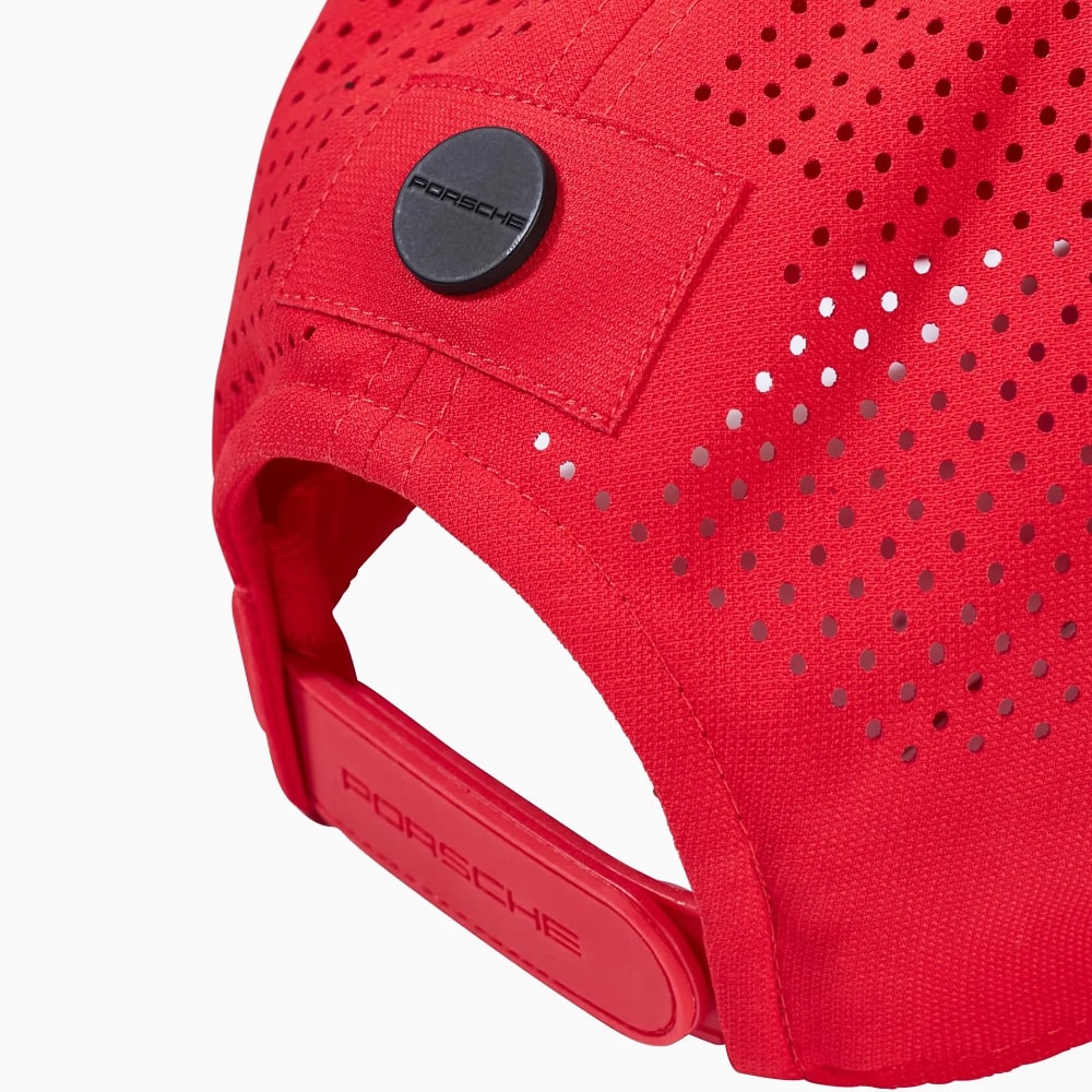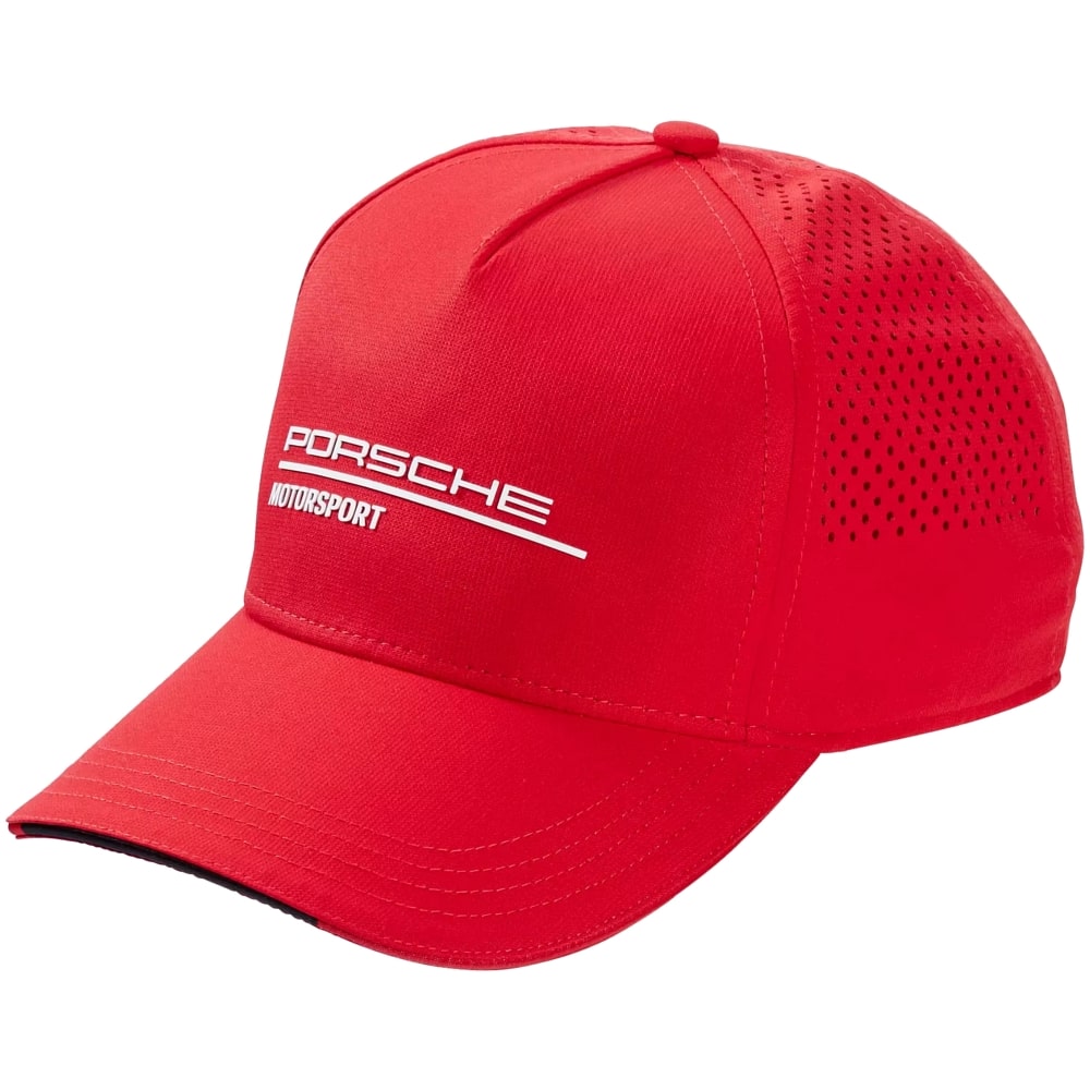 Perforated five-panel baseball cap with snap-back fastener and ‘PORSCHE MOTORSPORT’ signet.