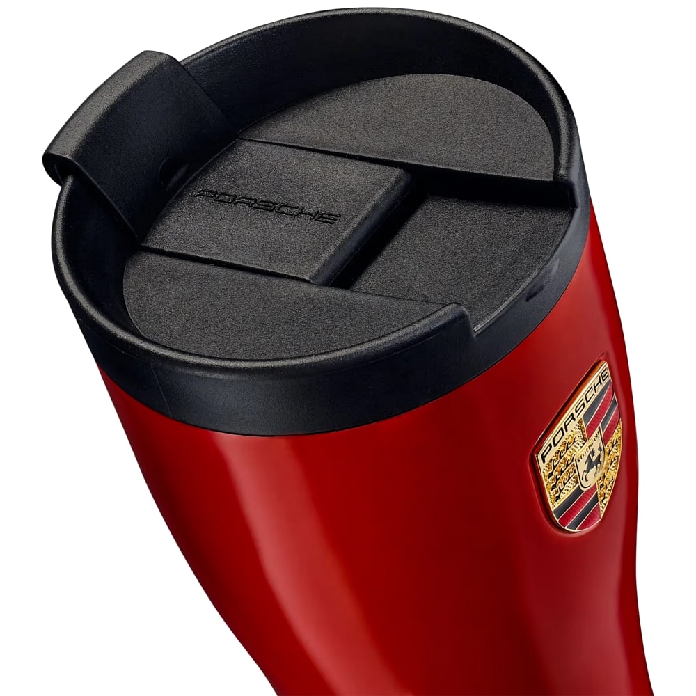 The body of the mug is adorned with the Porsche crest, the lid has an embossed Porsche logo and is also 100% leak proof.