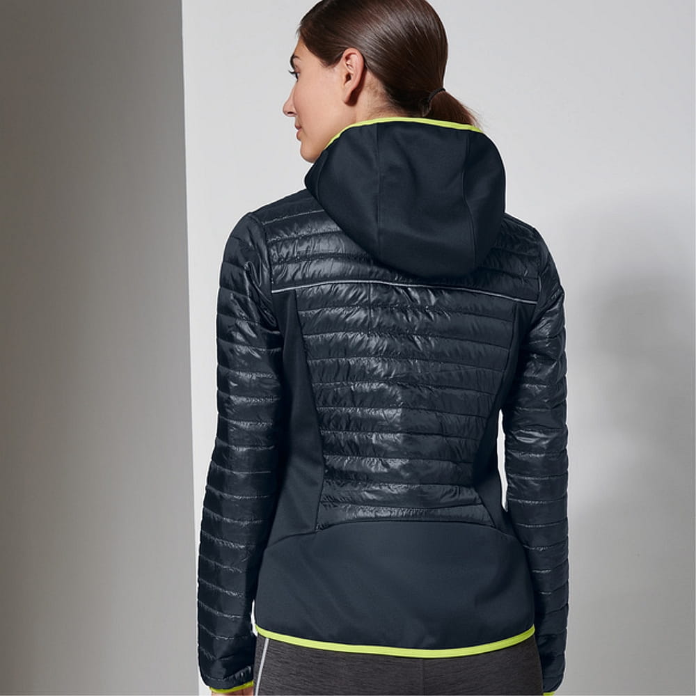 Porsche women’s softshell jacket with hood, lightly padded on the sleeves and rear.